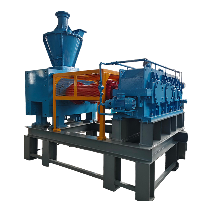 Briqueteado: Los rodillos giran en direcciones opuestas, impulsados por un motor, mientras un sistema hidráulico aplica alta presión al rodillo en movimiento. Bajo esta presión, el material se introduce a presión en la cavidad del molde, expulsando el aire interno y formando gránulos densos.