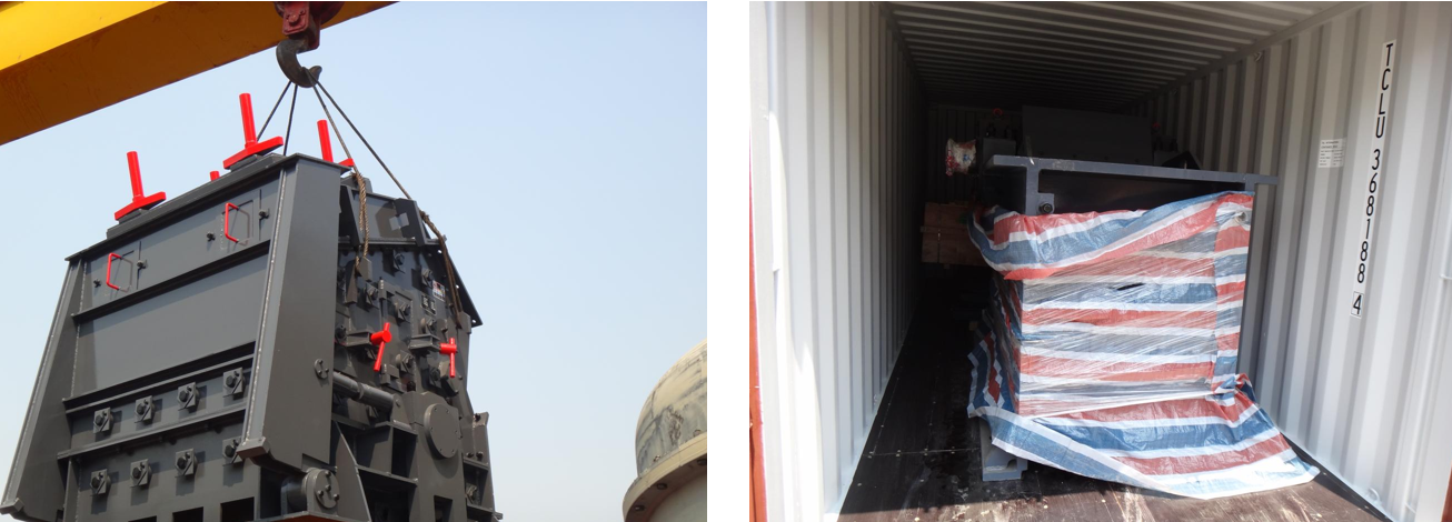 En este proceso de envío, los equipos principales son la trituradora de mandíbulas y la trituradora de impacto. Tomando como ejemplo la trituradora de impacto, durante la carga, MR primero verifica los puntos de izado del equipo para garantizar su estabilidad durante el levantamiento. Además, para estructuras especiales o componentes importantes, como el marco de acero, MR aplica una película protectora de antemano como medida de protección. Durante todo el proceso de carga, MR actúa con meticulosidad y precisión, y además solicita al equipo que fotografíe cada paso para mantener un registro documentado.